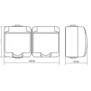 - seria i typ: JUNIOR IP54 Gniazdo hermetyczne podwójne z uziemieniem n/t białe GHE-2 KARLIK