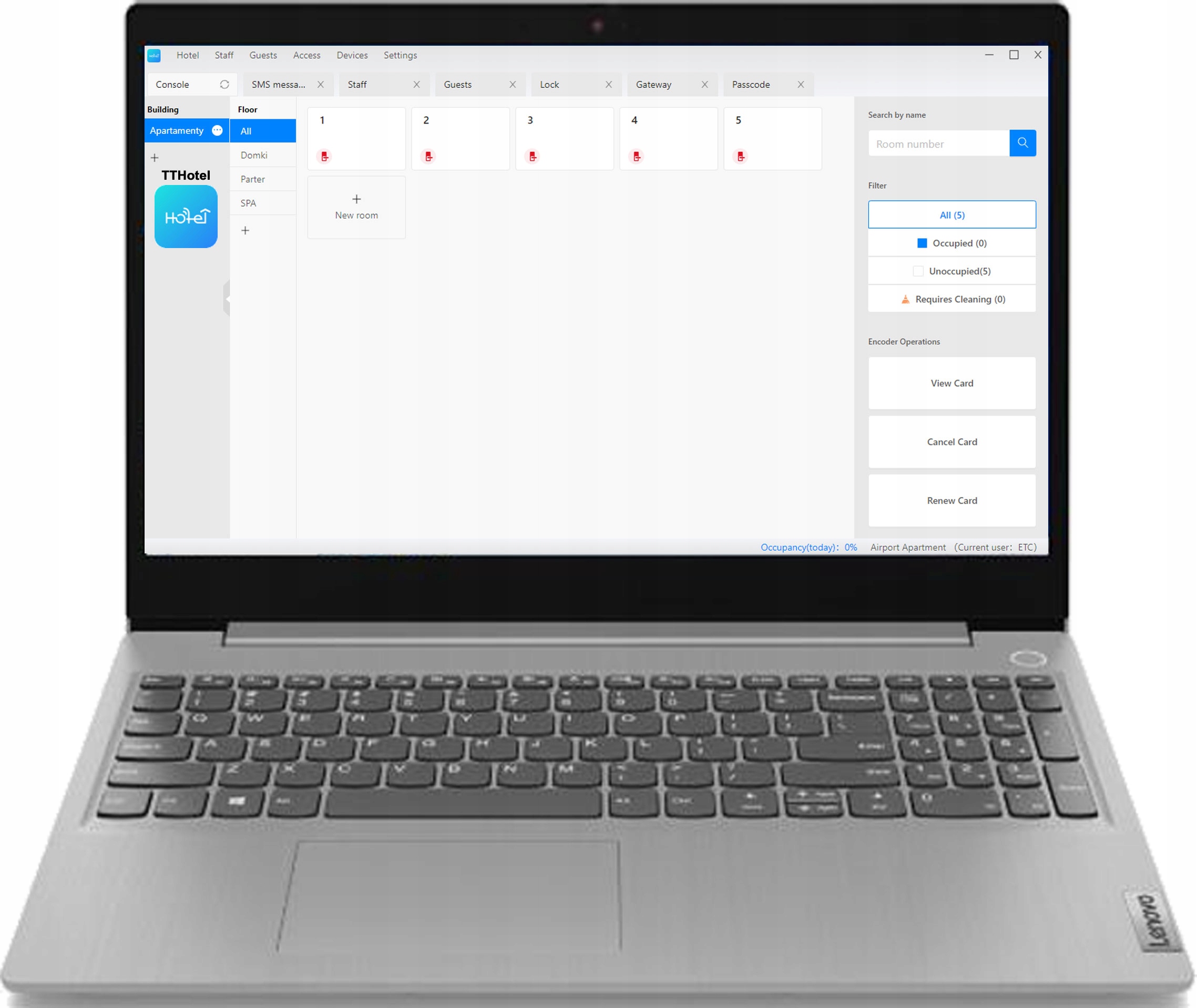 Obsługa hotelu przez aplikację TTHotel na system Windows i system Android https://hotel.ttlock.com (wymagany kod producenta – firma GARDA: 21047365), film prezentujący tą aplikację pod adresem https://youtu.be/QuoF9ZAu1WA oraz obsługa polskiego systemu rezerwacji NFHotel www.rebrand.ly/NFHotel