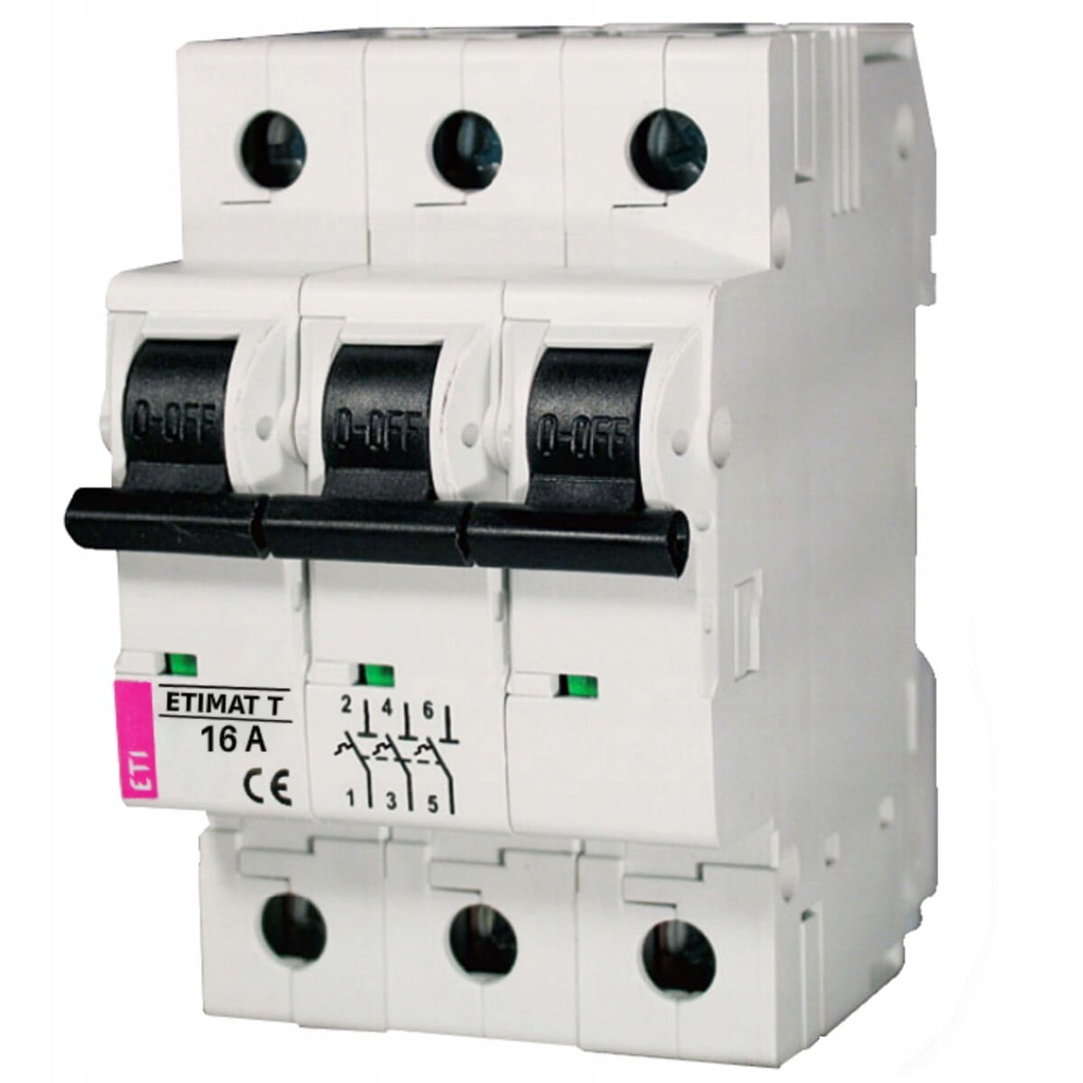 Eti Polam to polski koncern zajmujący się produkcją aparatury elektronicznej równego typu. Swoim klientom oferuje między innymi wyłączniki nadprądowe i przeciwporażeniowe, styczniki instalacyjne, modułowe na szynę TH 35, osprzęt izolacyjny do aparatów zabudowy modułowej, a także bezpieczniki topikowe – małogabarytowe i bezpieczniki topikowe do zabezpieczania diod i tyrystorów. Oferta firmy została podzielona na serie, które mają usprawnić proces wyszukiwania potrzebnej aparatury. Można wśród nich znaleźć tę o nazwie Etimat T. Kolekcja zawiera na przykład ograniczniki mocy. Powyższy ich model jest trójbiegunowy. Posiada także trzy moduły świadczące o szerokości urządzenia. Wymiar obudowy oznaczono liczbą 3. Aparatura przeznaczona jest do stosowania w pomieszczeniach. Nie sprawdzi się jednak w piwnicach i łazienkach, gdzie spotkać się może z wysoką wilgotnością powietrza. Ta mogłaby bowiem zmniejszyć efektywność pracy aparatu. Stopień jego ochrony to IP20. Znamionowy prąd pracy wynosi 16 A. Urządzenie prawidłowo pracuje przy zmiennym napięciu sterowania, którego wartość przy częstotliwości 50 Hz wynosi od 230 V do 400 V. Znamionowa zwarciowa zdolność łączeniowa wynosi 6 kA.
