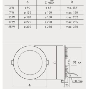 Oprawa downlight LED ORIS PLUS 7W 560lm AC220-240V 120 IP20 4000K LD-ORW07W-NBP GTV 5902801243165