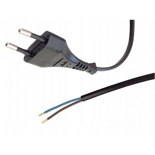 Wysokiej jakości przyłączeniowy przewód zakończony fabrycznie zalewaną, nierozbieralną wtyczką płaską. Z drugiej strony żyły przewodu zakończone tulejkami ułatwiającymi podłączenie do urządzenia. Doskonale sprawdzi się do wszystkich urządzeń stałych i przenośnych.