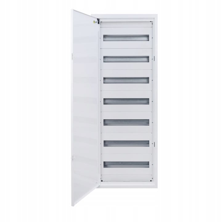 Wyposażona w siedem rzędów szyn DIN z możliwością instalacji 18 modułów na jednej szynie. Dno rozdzielnicy idealnie dopasowuje się do ściany.