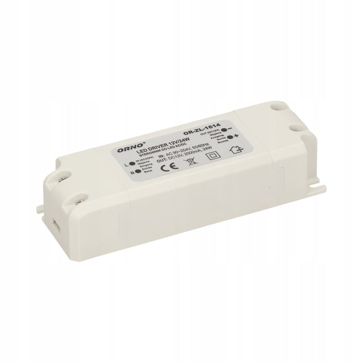 Małogabarytowy zasilacz przeznaczony do systemów oświetleniowych LED, m.in. pojedynczych diod, listew, taśm LED, żarówek, modułów lub węży, wyposażony w uchwyty pozwalające na przymocowanie do ściany lub sufitu. Stałe napięcie wyjściowe niezależnie od dopuszczalnego obciążenia, zabezpieczenia: bezpiecznik 2A/250V.